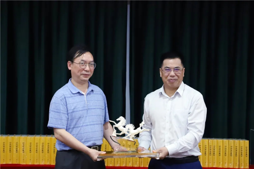 林承雄董事长回赠何清湖校长“马到功成”的艺术塑像 湖南医药学院是一所具有悠久历史的国家公办全日制普通医学本科院校,拥有雄厚的师资力量和一流的教学科研实力,药学专业为国家级一流专业建设点,临床医学、护理学、药学、医学检验技术为省级一流专业建设点。厚德医萃、仰天行健,办学近百年来,为社会输送了近10万名医卫人才,为武陵山片区培养了大批“下得去、留得住、用得好”的应用型高素质医卫人才。学校先后获得“全国卫生系统先进单位”、“湖南省就业创业示范校”、“湖南省实践教学管理先进单位”等一系列殊荣。特别是何清湖校长是全国慢病管理的权威专家,是国家教育部中西医结合专业类教指委副主任委员、中国中西医结合学会教育工作委员会主任委员、中华中医药学会治未病分会主任委员、世界中医药学会联合会慢病管理专业委员会会长、国家中医药管理局中医男科学重点学科带头人、湖南省社科湖南中医药文化研究首席专家,何校长知识特别渊博,资源异常丰富,思维格外开阔,开拓精神超强,执掌湖南医药学院与怀仁大健康开展产学研全方位战略合作,实乃怀仁之幸,怀化中医药大健康产业之幸。