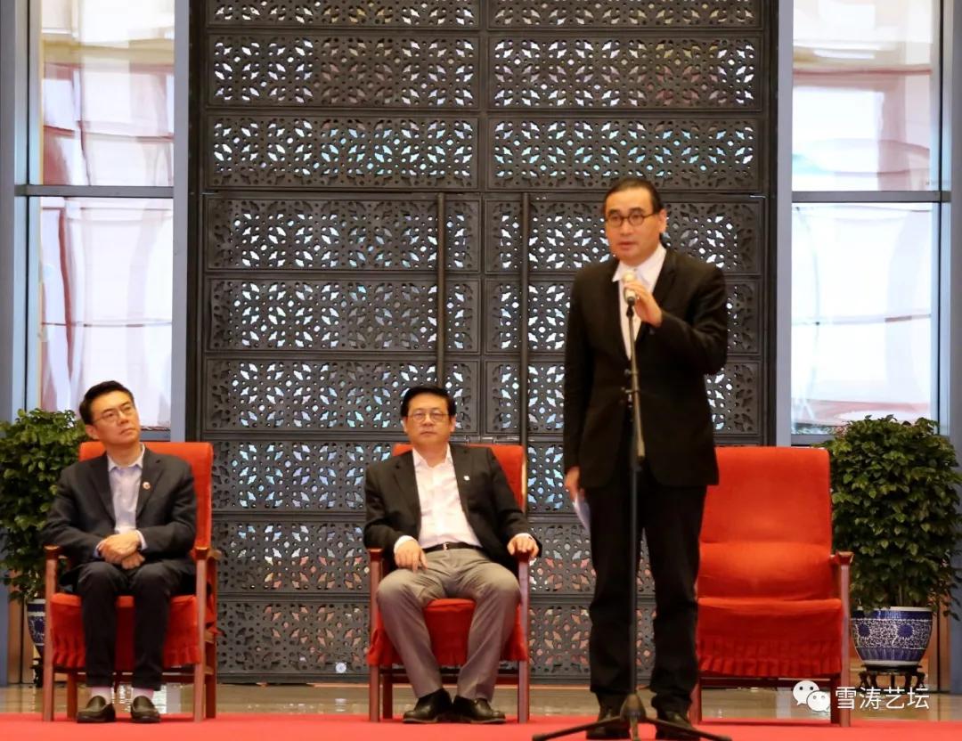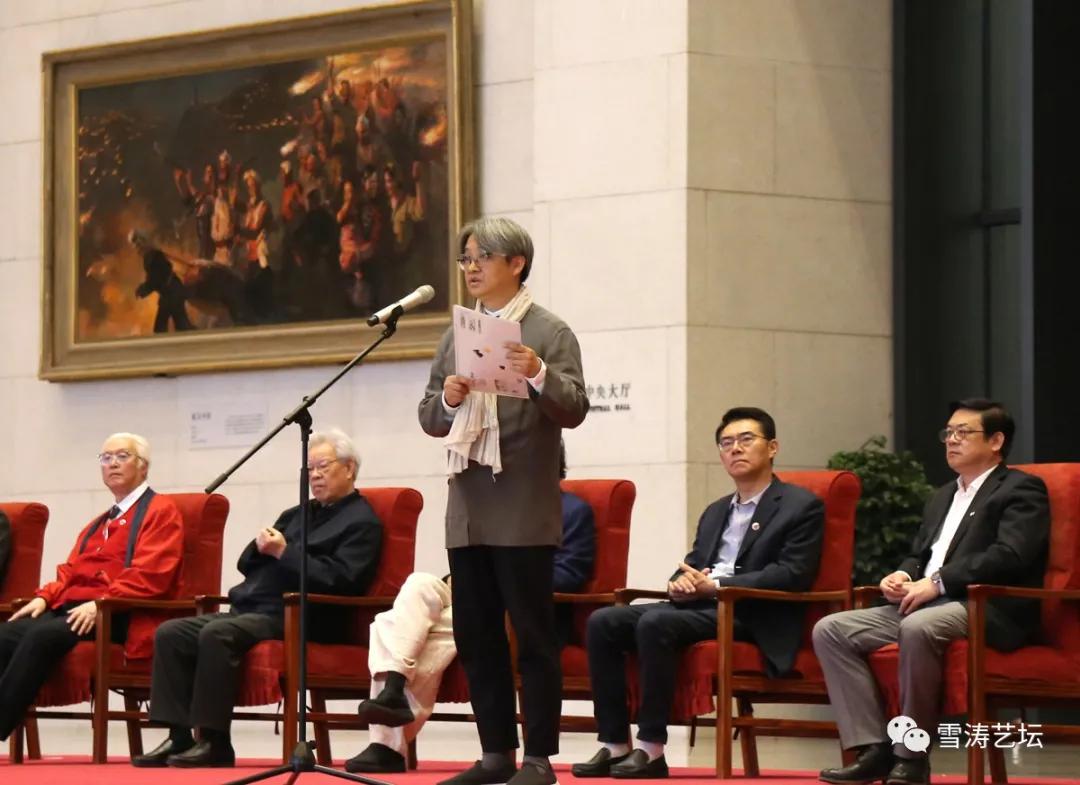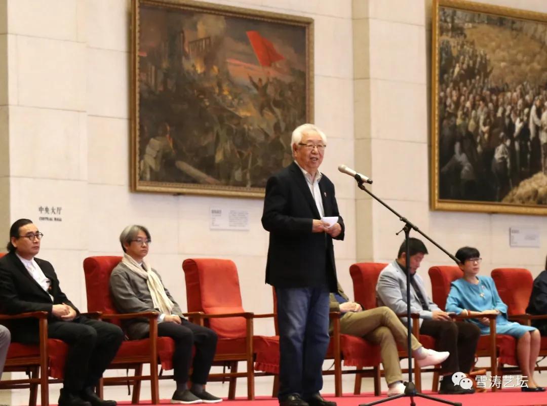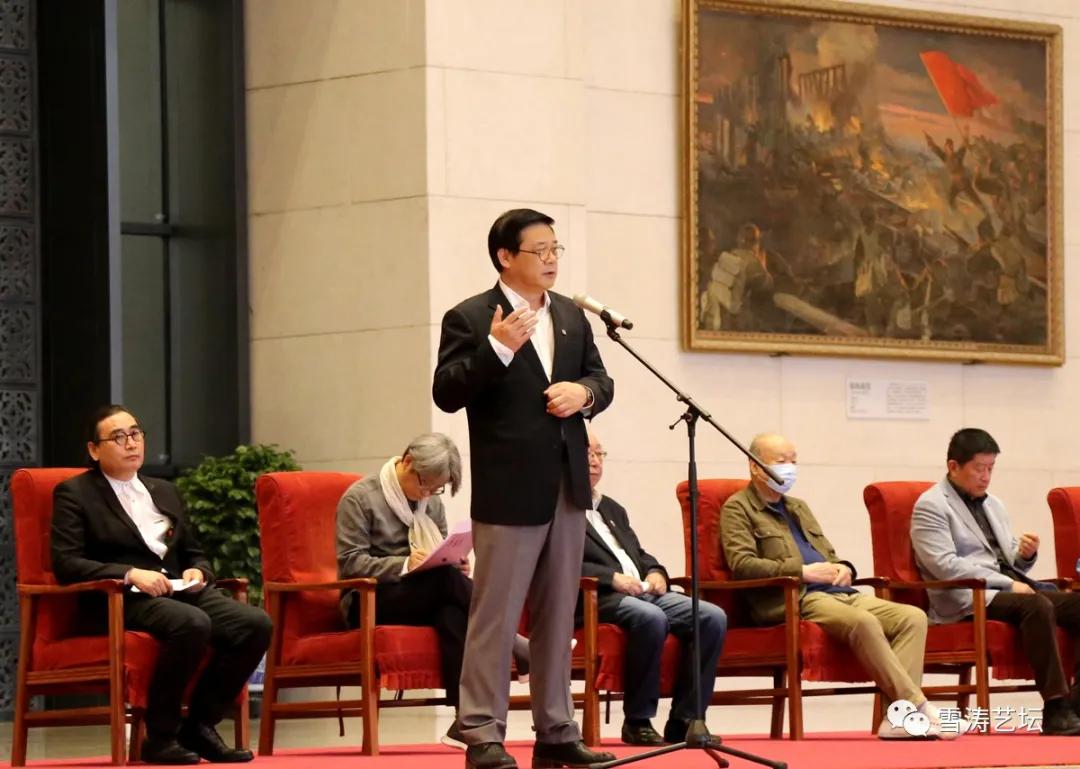 中国美术家协会分党组书记、驻会副主席徐里在开幕式上说: 国家博物馆和北京画院主办的“生趣盎然——王雪涛艺术展”在国家博物馆开幕,气氛特别热烈。来的老前辈和观众朋友特别多,可见雪涛先生艺术的魅力和中国传统文化的魅力。 非常庆幸的是在20世纪出现了一批绘画巨匠,雪涛先生是他们其中的一位。在新时代,我们有必要了解、认识、弘扬大师们的艺术精神。王雪涛作为20世纪的艺术大师,能够坚守本源,传承绘画艺术,是真正创造和发扬中华文化的艺术家。通过这次展览,可以让后人能更好的明确如何将中国传统文化一脉相承,特别是在当今复杂的世界格局之下,真正的“朔本求源”的同时寻求创新创作。 雪涛先生始终是站在中华文化的立场上,体现了时代精神,进行创新创造。在求真的过程中,体现了对于中华文明的复兴,对于中国人的开放、包容的胸襟。通过笔端体现了他的德行、情怀和对国家、民族、对艺术发自内心的大爱。在他的花鸟作品中体现出时代的繁荣。这个展览非常值得我们去研究去思考。只有坚定文化自信才有我们中国梦的实现。 我们今天的中国画,在传承上能不能坚守正道,这是非常重要的。因为这几十年我们受外来文化的冲击太大,值得庆幸的是前辈们留下宝贵的财富,供我们静下心来好好学习、思考,让更多的人了解、认识并讲好我们中国的故事,提升我们的软实力。中国的艺术大师就是全世界的艺术大师。无论你承认不承认,我们中国的所有艺术大师都是全世界、全人类的。