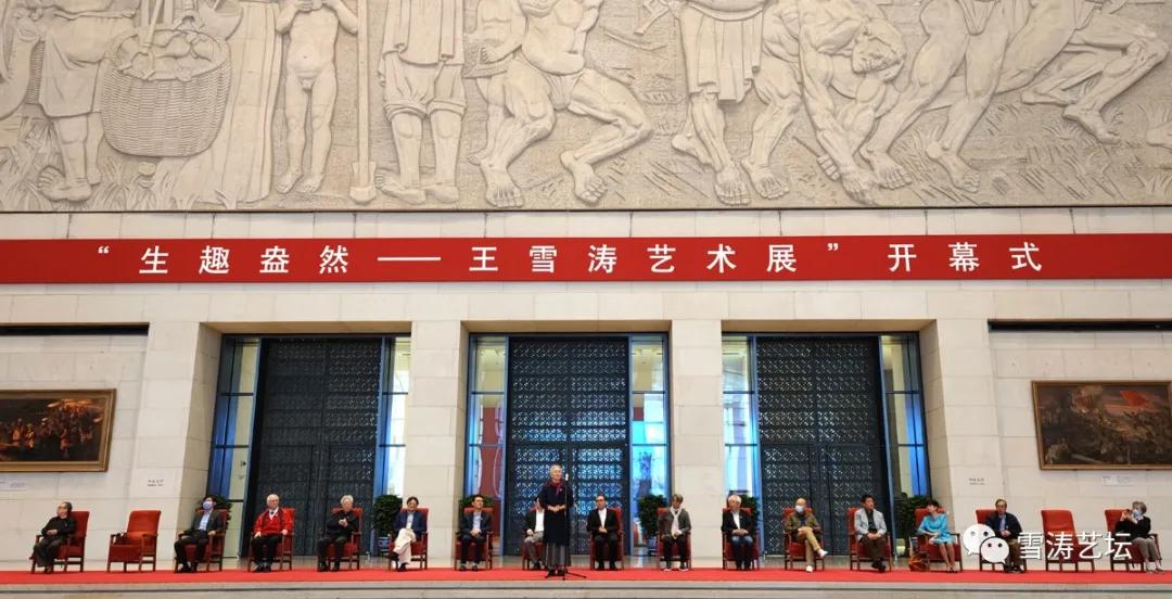 北京画院院长吴洪亮在开幕式上说: 非常高兴由中国国家博物馆、北京画院主办,王雪涛纪念馆协办的“生趣盎然——王雪涛艺术展”在中国国家博物馆顺利开幕。 王雪涛先生是20世纪中国美术史上卓有成就的花鸟画大家。他清新灵动、富有情趣的小写意花鸟画至今在中国画坛无出其右。他幼年喜好绘画,考入国立北京艺术专科学校,后转益多师,曾师从陈师曾、王梦白、陈半丁、萧谦中、柯罗多等。又拜入齐白石门下。齐白石曾赞誉其“蓝已青矣”。他六十年潜心研究花鸟画艺术,上溯宋元,涉猎明清,融汇中西,贯通古今,以革新的意识创作了大量画作,终于成为集大成者,独树一帜。 王雪涛先生在1955年北京画院建院之初,就参与了画院的筹建工作。1978年开始任北京画院院长,为画院的发展做出了巨大的贡献。本次展览中展出了珍藏于北京画院的多件王雪涛先生绘画作品,比较全面的体现了雪涛先生不同时期的艺术风格。2010年3月3日我们曾在北京画院举办过《墨海灵光——王雪涛花鸟精品回顾展》这个展览在当时具有相当的社会影响力。我们知道很多花鸟画学习者的入门就是从临摹王雪涛先生开始的。雪涛先生的绘画已经渗入到了百姓民间,成为了一种文化视觉的基因。 新中国成立以后,花鸟画如何服务大众成为了时代的课题。雪涛先生从50年代到80年代,通过不断的实践和探索,其绘画风格日臻找到了新中国的新面貌。这种探究与努力,对于如何重新看待20世纪花鸟画的发展,以及当下如何进行艺术创造,都具有非常重要的历史意义与时代价值。 最后我在这里衷心的感谢中国国家博物馆、济南市人民政府、王雪涛纪念馆、济南天下第一泉风景区服务中心,以及王雪涛先生家属的大力支持,共同促成了本次展览。再次感谢中国国家博物馆策展工作部的同仁为本次展览的筹备所做的辛勤工作。也感谢今天能够到场的所有热爱王雪涛艺术的人士 。