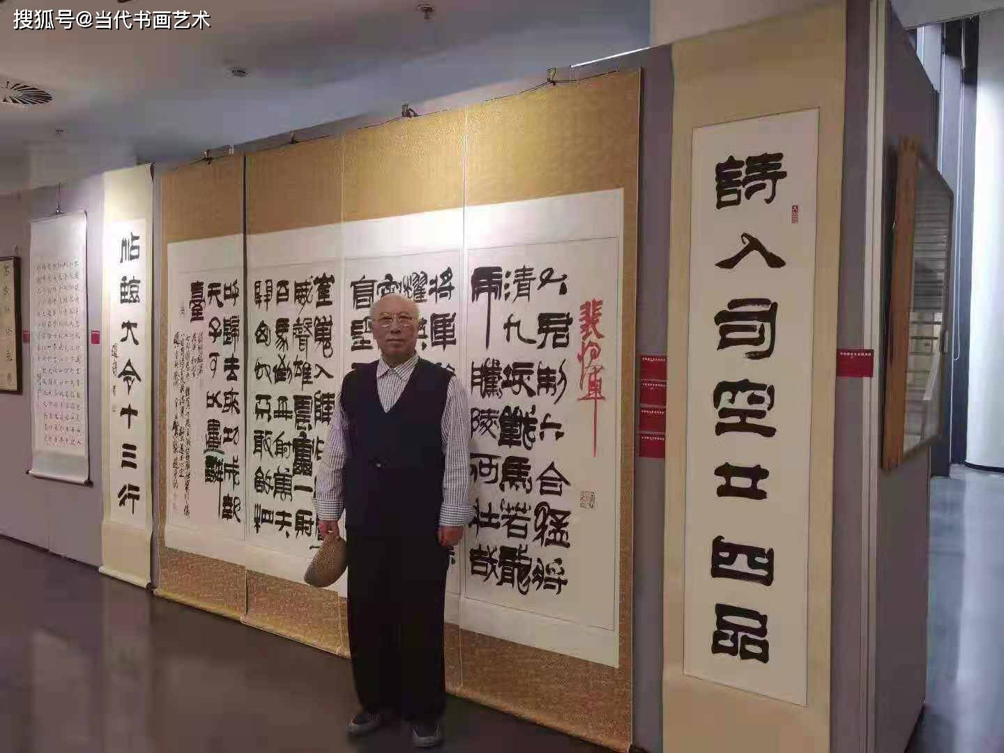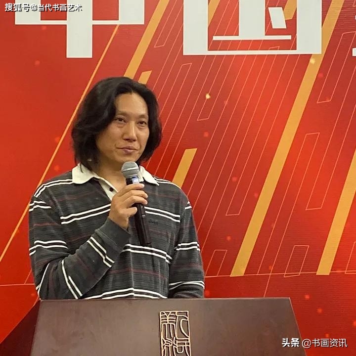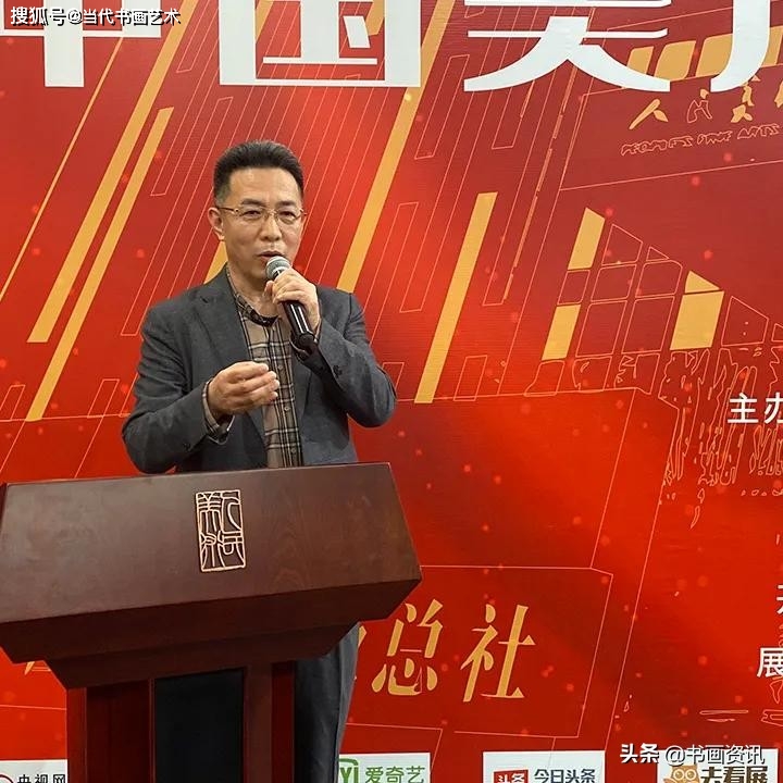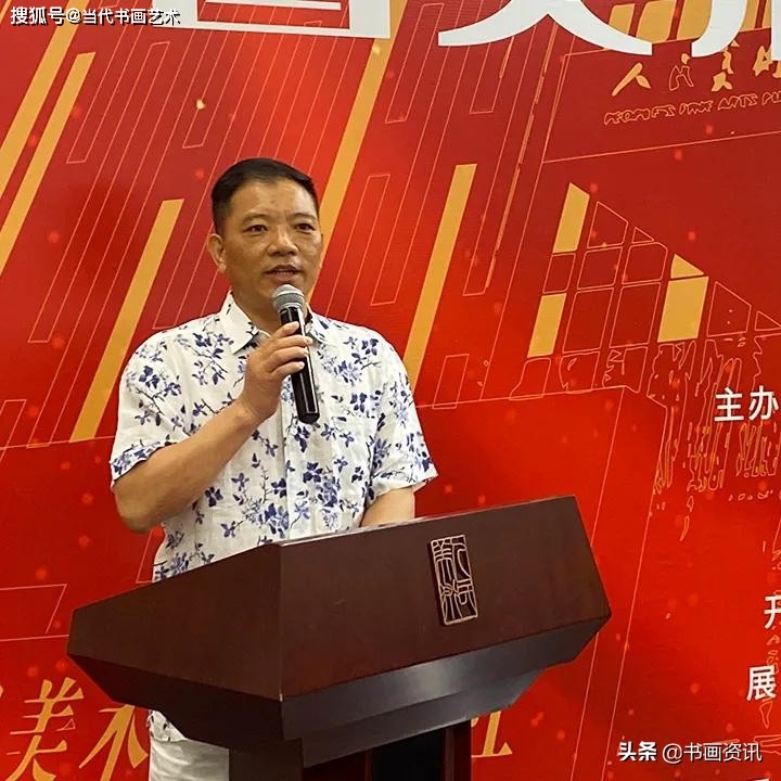 展览由田伯平先生担任主持:很荣幸能够出席此次展览,在这场群贤毕至、少长咸集艺术盛会中展出自己的书法作品。同时他表示,此次展览数量众多,在这些作品中,他深刻地体会到了美术工作者、艺术从业者对祖国的热爱之情、赞美之意。同时感受到了“笔墨当随时代”的具体实践,每一幅作品都代表着时代的声音,都是向伟大的祖国献礼,向中国的人民致敬。其中在看到作品《界碑》时他深深感叹,感叹边疆官兵的不易,感叹安定生活的不易。