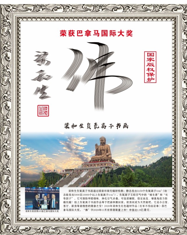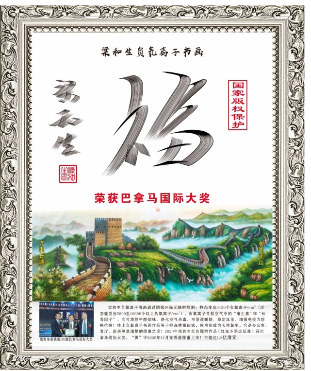 近日,由著名书法家梁和生博士创作的负氧离子书画在获得中国国家检测以后又通过了欧盟REACH高度关注物质环保检测!共检测了219项全部达标通过!为梁和生书画艺术品标准成型、环保检测出口、走向世界铺平了道路! ![]() SGS是一家检测、认证的著名国际专业机构,总部设在瑞士日内瓦,是全球最大、资格最老的从事产品质量控制和技术鉴定的权威机构!SGS实验室的测试能力比较全面,可以按各个国家,比如中国、德国、美国、法国等标准要求可以提供较为完善的环保检测报告,为公平、公正、质量保驾护航。 ![]() 梁和生,清华大学美术学院书法研究生学历,北京师范大学国学(易经)博士。独创《易经书法》、巜环保书法》、《负氧离子书画》等获国家版权专利保护。已获文化部“最具艺术创新奖","最具收藏升值奖";被评为“国礼艺术家”、“非遗文化传承大使"。 ![]() 2020年梁和生书法《红军不怕远征难》及《福》字等荣获第105届巴拿马国际大奖!这是全部唯一的一个获奖书法家,作品“佛”、“福”字在香港成功上市! ![]() 通过检测,梁和生负氧离子书画能发出5000到10000以上负氧离子/每立方厘米。家里或办公室有负氧离子书画,等于把森林般回了家,使房间成为了天然氧吧,室内空气特别清新!科学证明:负氧离子能净化空气杀毒、稳定血压血糖、提高免疫力抗癌!负氧离子又称空气中的“维生素”和“长寿因子”。 |