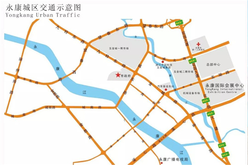 1、永康南站(高铁站):乘坐K11路公交直达;或直接打车到永康国际会展中心,距离7公里约15分钟左右即可抵达。 2、永康火车站:乘坐K2公交路线直达;或直接打车到展馆,距离5.5公里约15分钟即可抵达。 3、永康汽车东站:到展馆直线距离约700米,步行5分钟即到。 4、义乌机场:直接打车或乘坐102路公交直达义乌国际商贸城客运中心。客运中心到永康汽车东站,大巴约一小时一班。 5、义乌火车站(高铁站):义乌站和高铁站为同一站点,从义乌站乘坐到永康南站的高铁,约40分钟即可抵达永康。 6、杭州萧山机场:乘坐机场大巴到永康汽车西站,然后乘坐K2路公交或打车到展馆约15分钟;或者坐机场大巴到杭州东站(高铁站),坐高铁到永康南站约1小时10分即可抵达。 ![]()