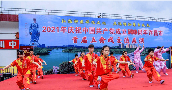 5月16日上午,由河南省许昌市体育局、市老年人体育协会主办,建安区华佗文化研究会承办的2021年庆祝中国共产党成立一百周年“许昌市首届五禽戏交流展演”活动在市体育场举行,来自全市的30支队伍约300余人参加。