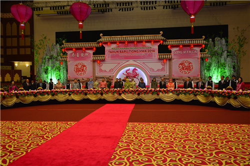 2014 年的新春团拜活动现场 , 右一及二为陈嘉兴及其夫人。