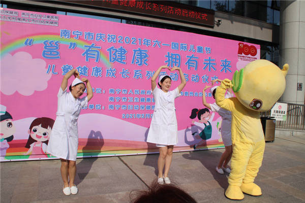 南宁市庆祝2021年六一国际儿童节“邕”有健康 拥有未来儿童健康成长系列活动启动仪式现场 张春梅/摄影 儿童是祖国的未来、民族的希望。为庆祝2021年“六一”国际儿童节,根据健康南宁建设决策部署及《南宁市儿童健康促进行动计划(2021—2025年)》等文件精神,南宁市卫生健康委员会联合南宁市妇幼保健院开展系列关爱儿童活动,促进儿童健康快乐成长。
