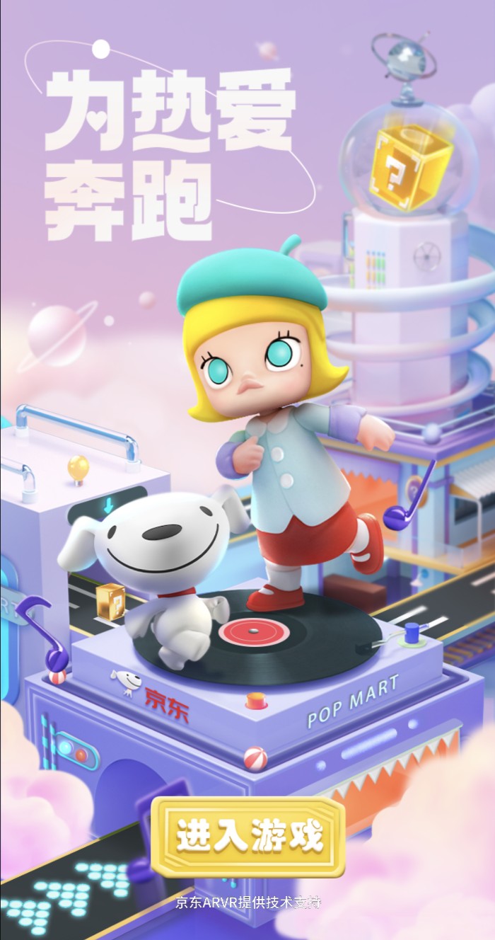 凭借盲盒火出圈的泡泡玛特,已经占据了无数年轻人的办公桌,成为潮流发展的风向标。作为潮玩IP代表,各行各业也积极与泡泡玛特跨界合作,探索趣味圈粉的新玩法。5月24日,京东联合泡泡玛特推出专属联名AR游戏,旨在为年轻解锁新奇刺激的游戏体验,为618互动游戏的正式开启热情加码。当潮流代表IP和电商巨头联合,势必会碰撞出不一样的火花。 京东携手泡泡玛特,为热爱快乐奔跑 正值“京东618,18周年庆”之际,京东重磅上线了全新互动游戏——“热爱狂欢趴”,提前点燃了购物狂欢节的火热气氛。在“热爱狂欢趴”互动游戏中,用户可以参与“动物联萌”游戏,通过完成任务获得金币,解锁新的动物伙伴,最终有机会与全国用户瓜分大额红包。 在收集金币的过程中,一款与泡泡玛特联名的“为热爱奔跑”的AR小游戏瞬间吸引众多年轻网友的关注。借助“为热爱奔跑”AR跑酷小游戏,用户有机会获得一定数量金币,而游戏中的角色形象正是泡泡玛特最受欢迎的IP之一“Molly”。
