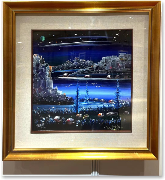 而《地球密码》《海洋密码》《黄昏湖》则是画家心灵影象梦境式再呈现,如梦似诗,如诗似梦。诚如法国著名世界艺术评论家热拉尓·索利盖拉,几年前参观了黄建南罗浮宫的画展后,写下感言: "无论来自那个大洲,众多画家力寻不用刻意的人为矫饰,来有意识地承担世间万象瞬间辉煌的使命。 他们勇于探索这一主题,引领我们进入时间流逝的秘密。" 那么画家黄建南先生心里的歌声,究竟是什么样的颜色呢?请看这幅蓝色调的《永远的歌谣》,很自然地让人想到《格林童话》白雪公主和五个小矮人的故事,没有被王后毒苹果害死过的白雪公主,同样会邂逅自己的白马王子,而获得美丽又美妙的爱情;而这幅白色调的《永远的歌谣》,远方的雪山就像跳动的音符,款款从五线谱中走出来,似乎让人听到了美妙的旋律。而雪山下的湖泊,又很自然地让人想起柴可夫斯基的芭蕾舞剧《天鹅湖》,一万只洁白的天鹅飞来,燃起蜡烛,为王子与公主祈福,而没有必要双双投湖殉情。一切都是美的,因为,美可以原谅罪恶。