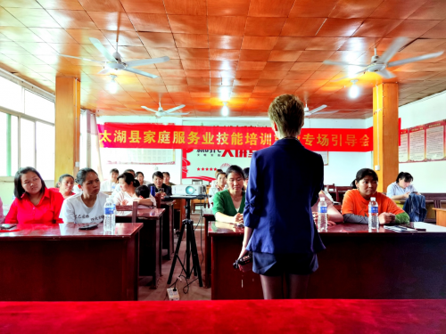 2021年5月28日,太湖县首次家庭服务业技能培训就业专场引导会在太湖县弥陀镇弥陀村成功举办。太湖县人社局就业促进股长、蓓爱孕产集团相关领导以及在弥陀镇开展家庭服务业技能培训的学校负责人参加了会议。本次专场引导会分为上午和下午两个专场,上午专场参会学员来自蓓爱职校培训的40位学员,下午专场参会学员来自星火职校培训的29位学员.,这些学员均是已经参加过家庭服务业技能培训并结业了的学员。
