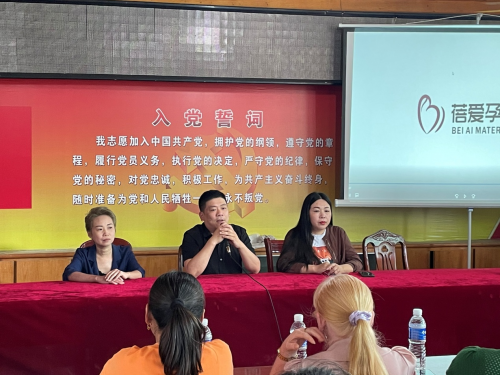 会上,蓓爱孕产集团总裁詹王平首先感谢县人社局、弥陀镇、村领导和培训学校对本次专场会的大力支持,然后向与会学员简单介绍了集团基本情况,蓓爱孕产集团是中国高端母婴护理机构,总部位于上海,旗下拥有蓓爱月子会所、蓓爱妈咪产后修复、蓓爱学院、蓓嫂家政、蓓爱母婴商城等品牌运营中心。目前,在上海虹口区、安徽潜山市、安徽太湖县、浙江余姚市等地设有高端直营月子会所和产后恢复中心。根据集团发展规划及人才储备培养计划,2021年集团总部及各分店、加盟店有庞大的家政服务类岗位需求,非常欢迎太湖的妇女姐妹加入到蓓爱这个友爱的大家庭。