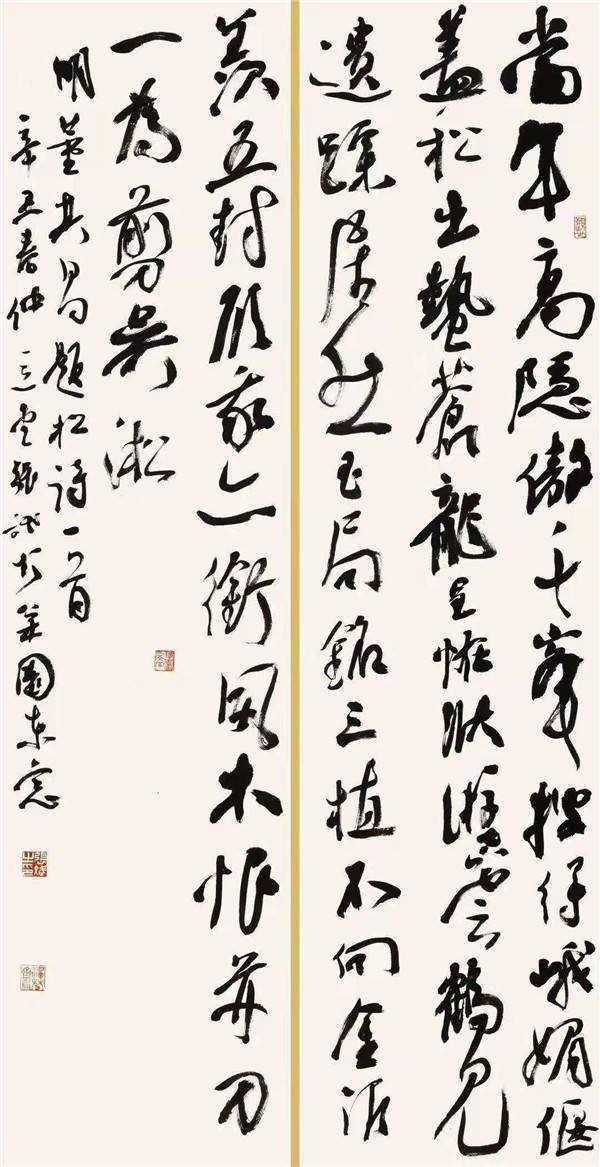 黄惇老师讲话并宣布展览开幕 ![]() ![]() 张斌、霍正斌俩位老师现场挥毫 开幕式后进行了“志道游艺——霍正斌、张斌书法展”坐谈会,嘉宾针对两位书家的作品展开了讨论。张恨无博士主持了坐谈会。 ![]() ![]() ![]() ![]() 霍正斌,号古片,1970年出生,连云港人,十月书会成员,毕业于南京艺术学院,获艺术硕士学位,导师黄惇。民盟盟员,中国书法家协会会员,江苏省书法院特聘书法家,江苏省青年书法家协会理事,江苏省青年书法家协会篆刻委员会委员,南京印社社员,苏州市书法创作委员会委员,苏州市东吴印社理事,昆山书法家协会副主席,昆山市道教协会副会长,昆山亭林印社社长,昆山巴城书协执行副会长。张斌,1982年9月生于江苏昆山,师从陆家衡、陈海良先生。中共党员,管理学学士,中国艺术研究院艺术硕士,江苏省第十次文代会代表,第十三届昆山市“十大”杰出青年(社会推举)。现为中国书法家协会会员、江苏省委省政府江苏文艺“名师带徒”计划成员、江苏省书法院特聘书法家、江苏省青年书法家协会行草书专业委员会委员、北京人文大学兼职教授、昆山市书法家协会副主席兼秘书长、亭林印社执行社长。先后荣获第七届中国书法兰亭奖,多次入展全国书法篆刻展。 霍正斌、张斌二人名中各有一个“斌”字,生肖都属狗,亦均为昆山一时俊彦、书法名家。此次两人各奉献20件精品近作,联袂在五星级酒店桂之茶舍举办书法展,使观众在焚香、茗茶、赏花、听曲的雅致环境中,观赏书法作品、交流书法艺术、弘扬传统文化,实为纷扰喧嚣的都市生活增添了一份“茶禪一味”的清新之风。 ![]() ![]() ![]() 张斌,1982年9月生于江苏昆山,师从陆家衡、陈海良先生。中共党员,管理学学士,中国艺术研究院艺术硕士,江苏省第十次文代会代表,第十三届昆山市“十大”杰出青年(社会推举)。现为中国书法家协会会员、江苏省委省政府江苏文艺“名师带徒”计划成员、江苏省书法院特聘书法家、江苏省青年书法家协会行草书专业委员会委员、北京人文大学兼职教授、昆山市书法家协会副主席兼秘书长、亭林印社执行社长。 书法获奖入展情况 第七届中国书法兰亭奖 全国第十二届书法篆刻展 全国首届书法临帖展优秀奖(最高奖) 全国第三届册页书法展 全国首届 “瘗鹤铭”奖书法篆刻展 雨山问道—江苏省书法院学术提名展(行书)第一名 第三届江苏文艺大奖·书法奖(最高奖) 第八届江苏省新人书法篆刻作品展优秀奖(最高奖) 第七届江苏省青年书法篆刻展优秀奖(最高奖) 江苏省纪念建党90周年美术书法摄影展金奖(最高奖)第二届江苏书法奖提名奖 首届江苏家训展提名奖 江苏省第六届青年书法篆刻展 首届江苏书法奖 第四届“林散之”江苏书法作品双年展 全国第四届王羲之奖书法篆刻展 全国首届张弼杯书法篆刻展 “正山堂杯”第五届茶文化书法作品展 第三届全国中青年书法“百强榜”前100名 展览情况 2020年12月在刘海粟美术馆举办“心源——张斌书法作品展” 出版研究情况 作品和文章发表于《中国书法》、《书法教育》、《书与画》、《书法报》、《书法》、《大河美术》等专业刊物。出版有《临习指要》、《张斌书法近作集》、《张斌书法》、《张斌篆刻》、《清欢》、《迁想妙得——立堂篆隶匾额书法集》、《心源——张斌书法作品集》等。 |