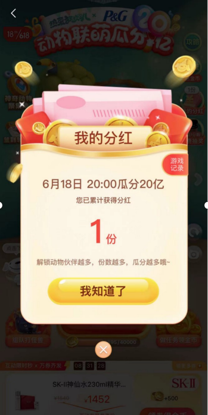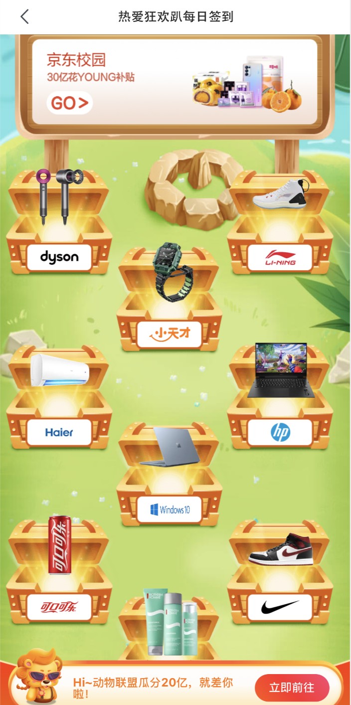 “动物联萌”花式玩,趣味瓜分20亿 京东618“热爱狂欢趴”互动玩法以“动物联萌”游戏为主体,通过集结35个小动物,解锁五大自然场景,共同抵抗怪兽,开展一场为热爱的冒险之旅。游戏形象设计可爱,故事背景有趣,融合了生活中的人物形象和情感特点,力求让消费者享受和发现生活的乐趣,同时在玩游戏的过程中收到实打实的现金红包、优惠福利,轻松get剁手回血新姿势,收获一边游戏一边赚钱双重快乐。 “热爱狂欢趴”的游戏玩法十分灵活。最直接简单的是“签到玩法”,点点手指参与每日签到,就有机会领取红包、优惠券、实物奖等奖励,连续打卡还有可能获得最高618元红包;社恐福音的“单人玩法”,用户可以自由游历五大场景,通过一定数量的金币解锁更多小动物,升级中可以积累红包份数,最终瓜分高达20亿的红包奖池;喜欢组队的年轻用户一定不要错过“多人玩法”,通过邀请好友组队抵抗企图破坏狂欢趴的怪兽,就可以获得队伍红包,打怪兽的技能可以通过拉好友助力、完成品牌任务等方式获得,最终根据个人贡献在6.18换成无门槛红包。 三种玩法难度由浅入深,自由度高,不管你是什么类别的玩家都能找到适合自己的玩法,即使是对游戏不熟练的普通“薅羊毛”党和“躺平党”也能轻松参与其中,通过简单互动收获现金红包、优惠券等惊喜福利。还在等什么?实打实的奖励发放,让你在这个618放肆购物的同时,轻松保住自己的“手”。