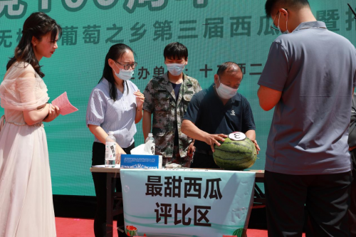 图最甜西瓜争霸赛比赛现场 据了解,在6月5日下午,新疆吃瓜客助农直播团队当天直播销售产品销售额达10万单左右。这次221团首次直播农产品,助农团队专程到该团四连六奇合作社科技农业示范基地,通过现场专家专业指导,为当地农产品上行拓宽了渠道。今年,221团共种植西瓜7200余亩,截至目前已销售西瓜15500余吨,预计今年产量将突破3.6万吨,总产值超过7200万元,西瓜种植已经成为团场农业经济的支柱产业之一,是职工群众致富增收的重要途径。