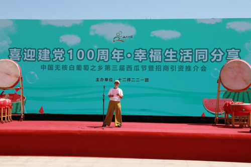 聚焦中国无核白之乡新疆建设兵团十二师221团 沿途路过一片又一片戈壁滩,首次来到这里,才知道这个较偏远的中国无核葡萄之乡兵团第十二师221团,眼下正值7200余亩的西瓜成熟采摘期。 6月7日,《新疆是个好地方——走进新疆14个地州市,106个县团,讲1072个故事》大型直播助农活动第二站,聚焦新疆建设兵团的第一站,选在了中国无核白葡萄之乡兵团第十二师221团。当天221团举办第三届西瓜节暨招商引资推介会开幕式。