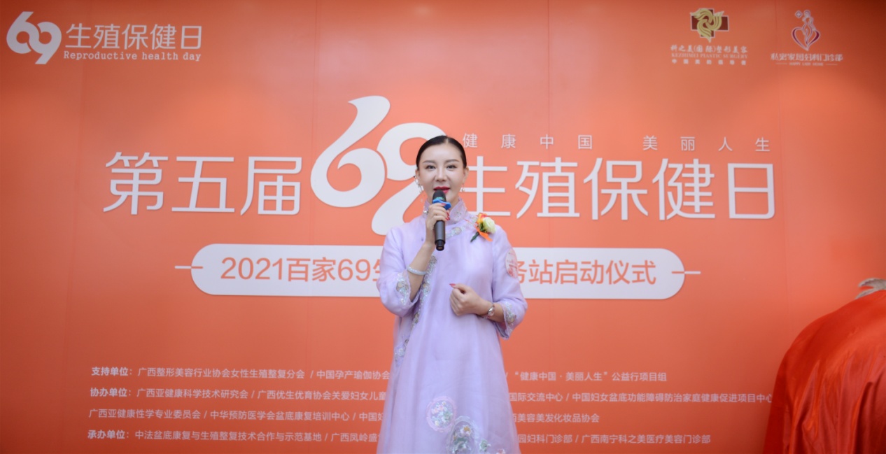 广西女性生殖整复分会常务副会长李雪萍女士在致辞中阐述了69的文化以及“69生殖保健日”的发起与初心。她谈到,女性的生殖系统是人体最晚成熟,而却又是最早衰老的一个系统,如何更好的呵护生殖系统,让我们的生活更健康、更幸福,这就是69生殖保健日的使命与初心,因此希望通过“69生殖保健日”这个平台呼吁全社会倡导全民健康,重视自身的健康问题,进行全方位的预防未病,从而达到幸福家庭、社会和谐的美好愿景。同时,也希望通过全面的推广与普及,增强女性健康观念和自我保养的意识,提高全民生殖健康水平。