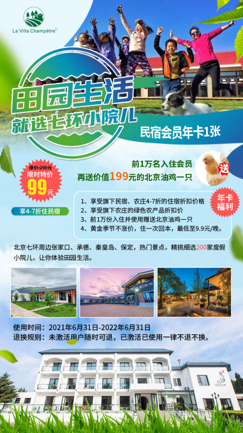 ( 法语:田园生活) 七环小院要做的就是,利用互联网和农业的融合创新,让每个人参与到田园生活中:春播种,夏避暑,秋收获,冬过节!让诗和远方近在咫尺。 |