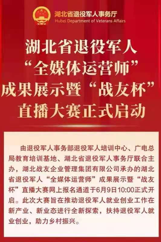 资金、项目、产品、学历、经验、关系等条件限制,成为退役军人、军属创业就业最大的拦路虎。承办本次直播大赛的湖北战友企业管理集团有限公司负责人介绍,由退役军人事务部退役军人培训中心、广电总局教育培训基地、湖北省退役军人事务厅联合主办的退役军人“全媒体运营师”成果展示暨“战友杯”直播大赛,坚持靶向思维,重点从新职业开发、针对性培训、就业服务、权益保障等方面强化扶持,一路有良师益友相伴,有系统化的培训和辅导相随,呈现退役军人、军属创业就业多元化人才孵化,激发退役军人创新创业创造动能,助推科技创新成果转化应用,服务国家创新发展,提升退役军人、军属创造力。 据了解,本次直播大赛主要面向2020年度湖北省退役军人“全媒体运营师”培训取得资质的学员1000名、湖北籍及在鄂工作的退役军人1000名和现役军人的军属、退役军人的军属1000名,以电台导师、网红导师、企业导师、创业导师为主的导师团,以战友团、亲友团、企业团、直播团为主的助力团,以授课、比赛、投票、带货为主同步赛,提升退役军人、军属创业就业创新创造精神,展现直播大赛塑造力。 目前,直播大赛已经开始报名,采取组织推荐与自主报名相结合方式进行, 由各市(州)退役军人局和活动组织机构对参赛人员资格进行逐一审核,按分配名额数量推荐上报,也可通过扫描二维码或在微信App中关注公众号 “湖北退役军人”进入报名通道,根据提示信息完成报名,参赛选手报名的直播账号仅限抖音或快手平台,每位选手限报1个账号且不可更改。(朱铭 郭邓林 ) |