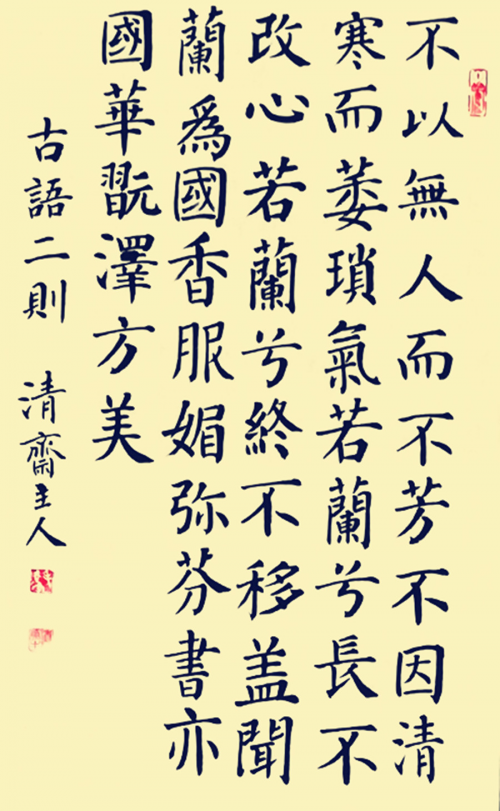 【名家简介】 毛学校,字敬之,号清斋主人,山东广饶人,现住山东滨州市。系中国书法家协会、中华诗词学会、中国楹联协会会员,国家一级艺术大师,中国书画艺术指导委员会委员,北京世纪名人国际书画院院士,北京京华阁书画院副院长,山东滨州市书协顾问,黄河三角洲书画院常务副院长,山东曲阜鸿儒书画院常务副院长,有诗集《清河集》《清斋诗墨》、书法《第三届中国重阳奖获奖书法家》《一代大家》毛学校专刊,《一带一路书法名家毛学校》等30余种作品集问世。 2019年,中国书协授于毛学校同志为"德艺双馨艺术家“。中国书画职称评定中心等单位授于毛学校为《人民艺术家》等称号。2021年又有《世界艺术鉴赏》中国风专刋等问世。2021年6月,在香港书法家协会《第十三届“京津冀走廊上的明珠"书画评比大赛中荣获“第一名”。 毛学校先生在诗词创作上也深有造诣,2008年,诗词入选《第二届华夏诗词奖作品集》。2010年诗词14首入首《齐鲁百年诗词选》。2016年诗词20首入选中华诗词学会编揖的《集成》山东卷等。经过多年的辛勤奋斗,毛学校先生的书法声誉更高,以至成为国内外知名的书法大家。 时代艺术大家毛学校书法述评——CCTⅤ《公益之声》人们常说爱美是人的天性,随着社会的不断发展和人民生活水平的不断提高,人们在物质生活和精神生活方面都需要更多的美,创造出更多更好更美的各种艺术作品,满足人们不断增长的物质生活和精神生活的需要。