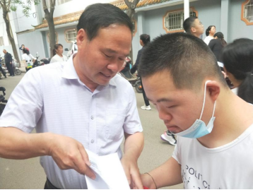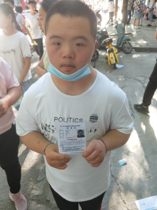 6月20日,在山西省长治市屯留区一中的中考考场上,有一位特殊的考生,他的名字叫刘凯瑞,是一名唐氏综合征患儿,这一天,在学校和老师们的帮助下,刘凯瑞如愿以偿,和同学们一起走进了中考的考场。