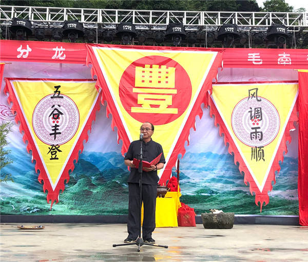 2021年广西环江•毛南族分龙节暨第七届世界自然遗产文化旅游节活动现场 张春梅/摄影 毛南族“分龙”民间传说演绎——五龙布雨,寓意着祈求毛南山乡风调雨顺、五谷丰登,体现毛南族人对美好幸福生活的向往。