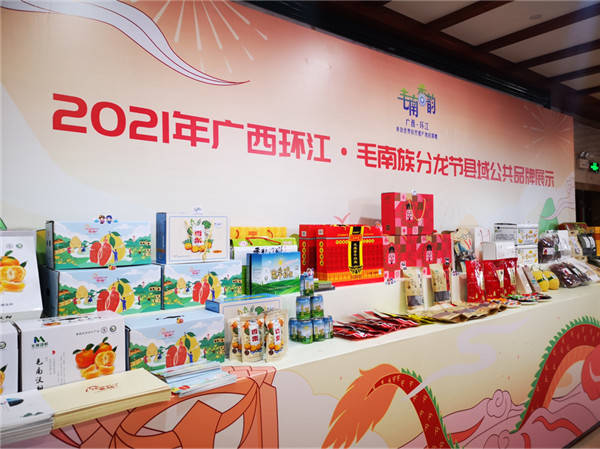 分龙节同期在毛南民族酒店举办“毛南香韵”县域公共品牌展销活动。“毛南香韵”是环江毛南族自治县打造的电商县域公共品牌,将环江优质产品通过网货化包装带给全国电商消费者。环江香猪腊肉腊肠、环江红心香柚、环江沃柑、环江喀斯特小蜜瓜、环江香菇等产品持续热销。