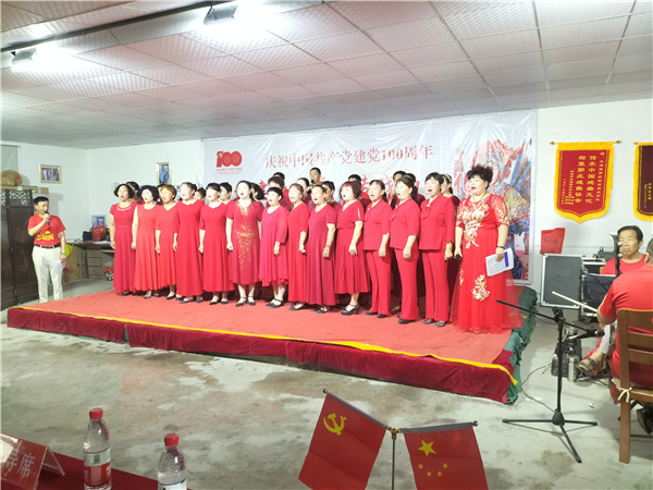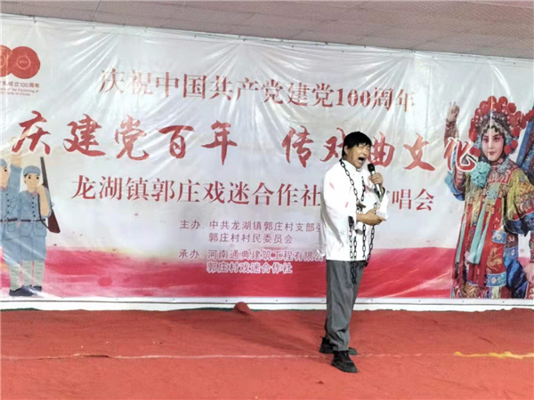 为庆祝中国共产党百年华诞,讴歌党的光辉业绩,继承和发扬党的光荣传统和优良作风,7月1日上午,龙湖镇郭庄村隆重举行“永远跟党走,奋进新征程"文芝汇演活动。