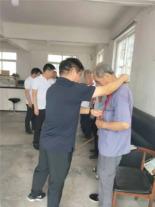一百载风雨洗礼,一百载峥嵘岁月, 一百载日夜兼程,一百载辉煌成就。 借五星之荣耀,扬民族之风采。 庆建党之壮举,祝中华之豪迈。 7月1日,与龙湖镇郭庄村“光荣在党”五十周年老党员一起分享中国共产党成立100周年生日快乐。(罗智民)
