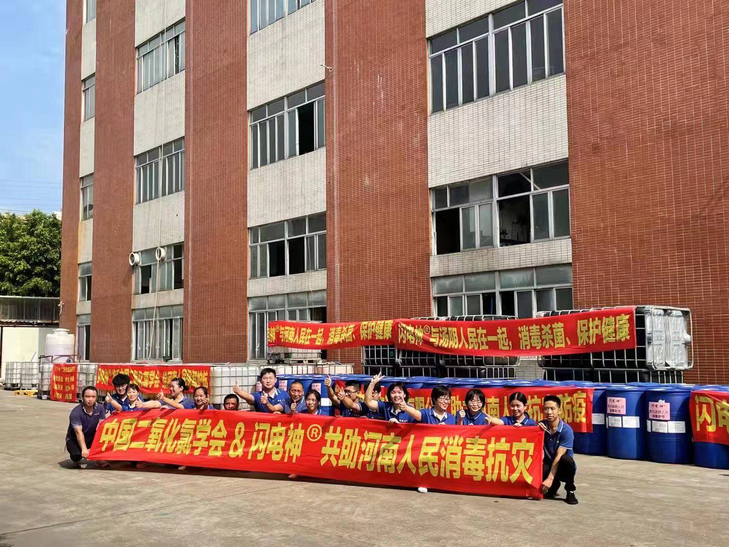 2021年突然爆发的河南洪涝灾害,使得河南人民处于水深火热中。 专业生产二氧化氯消毒产品的广州闪电生物科技有限公司是一家极有社会责任感和使命感的企业。7月20日,郑州市遭遇洪灾,广州闪电生物科技有限公司的领导第一时间商讨向灾区捐赠消毒剂事宜。第一批捐赠的3吨消毒液已经在7月26日送往鹤壁灾区。日前广州闪电公司再次携手广东省钟南山医学基金会和中国二氧化氯学会,分别向河南安阳市汤阴县捐赠二氧化氯消毒液30吨,向开封市尉氏县捐赠二氧化氯消毒液30吨。为此,闪电生物全体员工连续2周放弃休息日,加班生产,连夜晚赶工。8月2日,3日二批共60吨闪电神®二氧化氯消毒液,北上1600多公里奔赴河南汤阴,尉氏灾区。