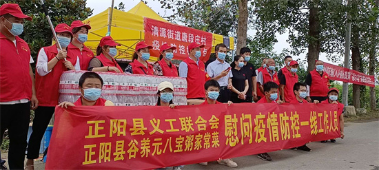 8月12日,正阳县义工联合会联合正阳县谷养元八宝粥家常菜,到各疫情防控一线开展献爱心活动。