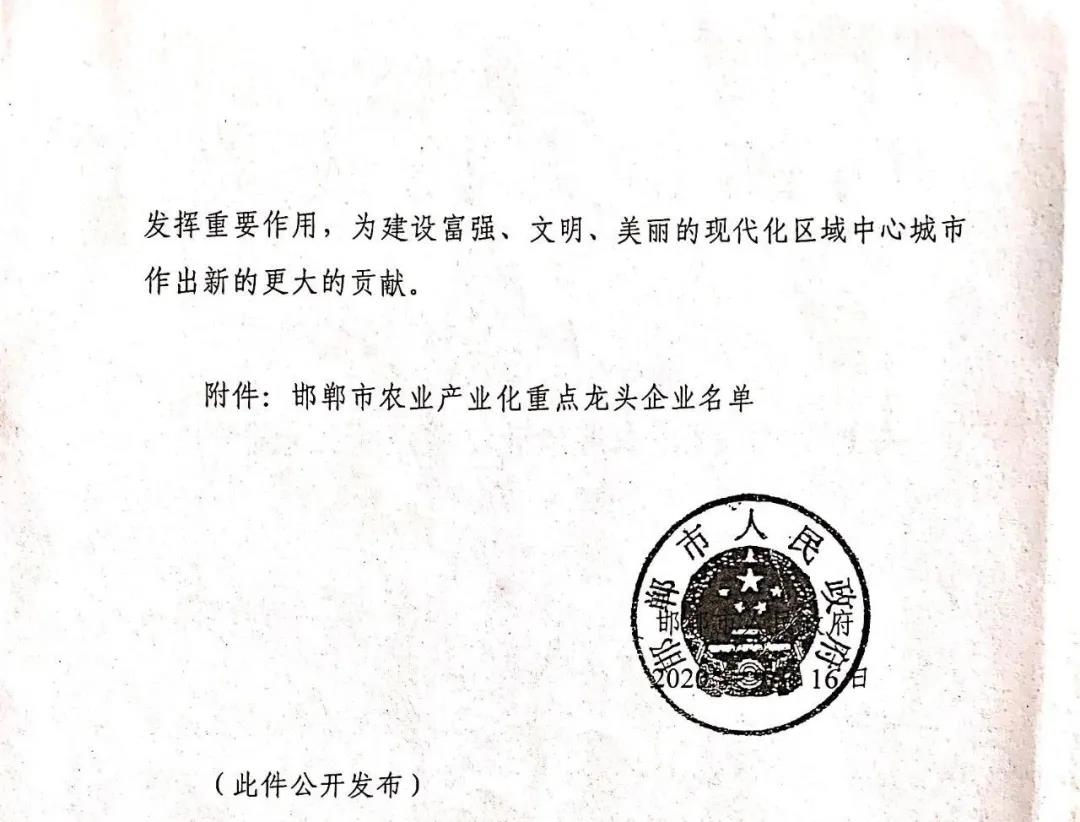 喜报:源沃肥业被授予“邯郸市重点龙头企业”荣誉称号