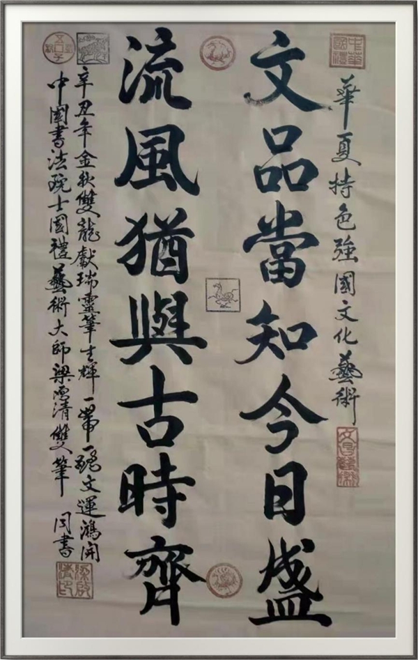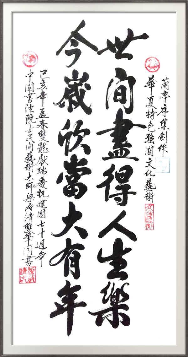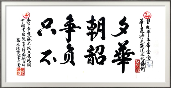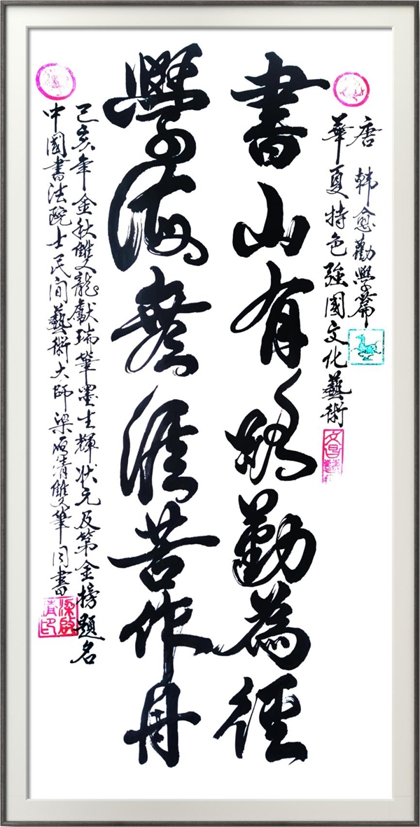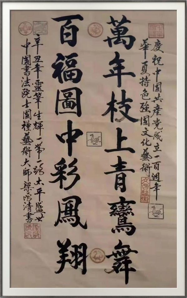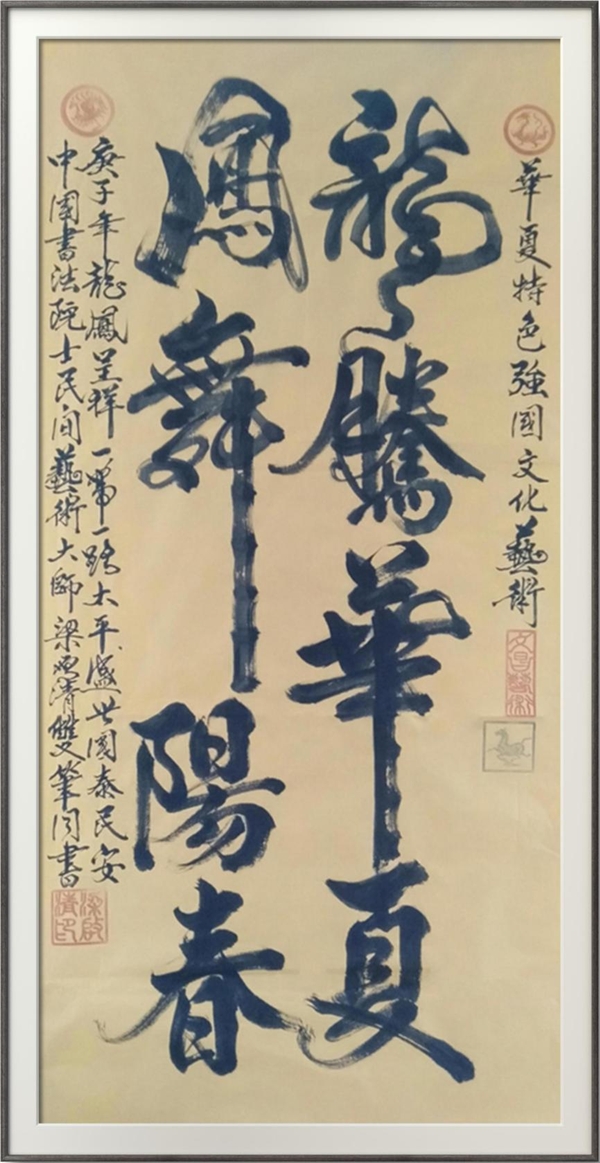 【艺术简介】 梁启清,男,广东省湛江吴川市人,出生于1945年,2005年受湛江市政府、湛江市湖光岩风景名胜区管理局聘请,承担中国雷琼AAAA级世界地质公园湛江湖光岩风景名胜区申世工程大型建筑雕塑项目火山博物馆,有80米长,4.8米高的湛江湖光岩故事浮雕壁画,东大门的千年古榕,13米高龙鱼,22米长、18米宽、6米高、400吨重的万寿神龟,(申报吉尼斯纪录)2007年建造的12.8米高双面望湖观音、望海观音、美貌端庄、如意吉祥,吸引众多络绎不绝的游客。1999年海南省三亚市政府,天涯海角旅游发展有展公司聘请梁启清雕塑鹿回头公园,九九国际婚礼节5.5米高月老像。 梁启清是我国著名的建筑雕塑大师。此外他制作的中国历史文化名人墨宝笔筒。他的雕塑巨作得到赵逊,德国世界地质科学家麦基维博士的高度赞赏。梁启清大师不但在建筑雕塑技艺大有成就,他的书画作品在艺术界也独领风骚。他的书画作品修炼功底深厚,章法与众不同,被誉为当代书画界改革先锋人物。书体章法结构大气,字画端庄秀丽,气势磅礴,技艺独一无二,双笔挥洒出神入化,楷书、行书、隶书、篆书、笔峰豪放,运笔流畅,楹联诗章,独具一格,大方得体,综合历代文化精髓,创作个人作品,独树一帜,不愧称为中华民族艺坛巨匠。他是个杰出的德艺双馨书画艺术名家。梁启清的一生在艺术事业上,刻苦钻研,而且练就双笔同书高难度大美作品。在艺术道路上,继承传统文化,在当代书画界以及工艺美术的发明创新传承达到理想的最高境界。 梁启清的诗章是采用中国上下五千年文化精髓。汉代我国文化最为昌盛时期的风水瓦当格局图案为图章,其中采用两个,一个是青龙星座,一个是朱雀星座。作为书画图章风水格局,和宅基座向装饰定位相结合,诗句楹联豪迈大气,吉祥和谐,意思是中国龙凤传人的最高艺术,一个是国宝铜马踏飞燕的方章,寓意作品的精湛高贵具有很高的艺术价值传遍世界,还有一个长形的篆体文昌艺术章,文昌帝君文曲星是人间文神,凡是读书人、有文化人都供奉他,以庇祐功名成就、文运亨通、状元及第、金榜题名。这枚章的书体都改革过是出自他的手笔,纯手工用水仲木雕刻出来的。梁启清的书法印章、笔、砚是经过世界地质公园湛江湖光岩望海观音、望湖观音开光时邀请美国纽约中华佛教协会会长和湖光岩椤严寺主持释清海大师开光点赞过,佛光普照,灵笔生辉。 2012年参加湛江市首届民俗绝技魅力湛江、双笔同书;五年崛起、幸福湛江获银奖。被吸纳为中国工艺美术协会会员。2014年双笔同书颂中华楹联工艺、一柱擎天开国运、双毫献礼颂中华,参加中国广州民间工艺博览会山花奖获铜奖,会展期间安排现场挥毫表演双笔同书技艺,并评为广东省优秀民间文艺家。 2016年中华民族历代名圣清风廉政雕塑系列,陈兰彬、林绍棠、孔子墨宝筒参加中国广东民间工艺博览会获银奖。2017年创作的大中华文宝香文化的中国梦、观音送子、麒麟送子、弥勒笑佛等浮雕装饰工艺荣获中国(深圳)国际文化产业博览交易会冬季工艺美术精品展获铜奖。被评为湛江市首届民间艺术大师,被吸纳为中国民间文艺家协会会员。 现为中国书法院院士,北京华夏兰亭书画院客座教授,庐山毛体书画院高级研究员,中国书画名家协会会员,华夏博学国际文化交流中心会员,中国诗书画家网书画研究院副院长,中国书画职称评定中心评定为国家一级书法师,国家一级美术师。中国互联网艺术总监,国际名人百科外联部主任,中国传统文化外交官,全球艺术名家。评估其书法作品每平方尺为12000—18000元(人民币)。评估其国画作品每平方尺为28000—36000元(人民币)。书法作品国内市场每平方尺30000—36000元(人民币)。国际市场为4500—5400(美元),国画作品为60000—66000(人民币),国际市场为每平方尺9000—9900(美元)。 现正准备申报国家级文化创作专利及申报文化传承非物质文化遗产。莫道高堂存瑰宝,安知乡野有奇葩。梁启清正是一枝这样的中华民族,五千年民族文化的继承传统、创新、独具一格的艺术奇葩。 【作品赏析】
