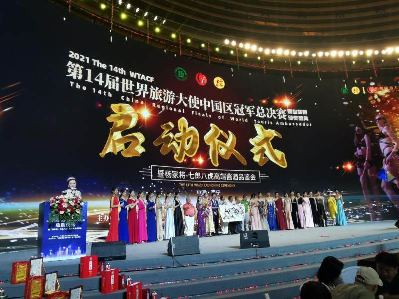 广西绿城空降世界旅游大使,朱槿花厅绽放文旅大赛之花 8月27日,南宁国际会展中心高朋满座,嘉宾云集。这里是正在举行的“2021第十四届世界旅游大使中国区冠军总决赛爱心慈善颁奖盛典启动仪式暨杨家将-七郎八虎高端酱酒品鉴会”。