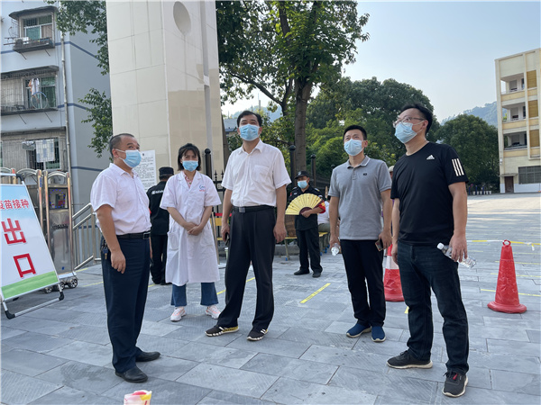 一、冲锋在前,党旗飘扬 7月30日,吉首市教体系统召开疫情防控工作调度会,突出抓好八项重点任务。全市各校积极响应,迅速行动,全面启动防控预案,进入抗疫战时状态。 8月1日起,吉首市第二小学、吉首市第一初级中学、吉首市铁路学校、湘西从文教育集团雅思初中部、吉首市光明小学五所学校先后设为方舱疫苗接种和核酸检测点。 局班子成员率先垂范,协同相关部门深入学校,抓好疫苗接种和核酸检测工作。机关党员干部临危不惧,下沉一线。系统1400多名党员听党指挥,冲锋在前,齐心抗疫。哪里有需要,他们就在哪里,充分发挥党员先锋模范带头作用,党旗在防疫一线高高飘扬。