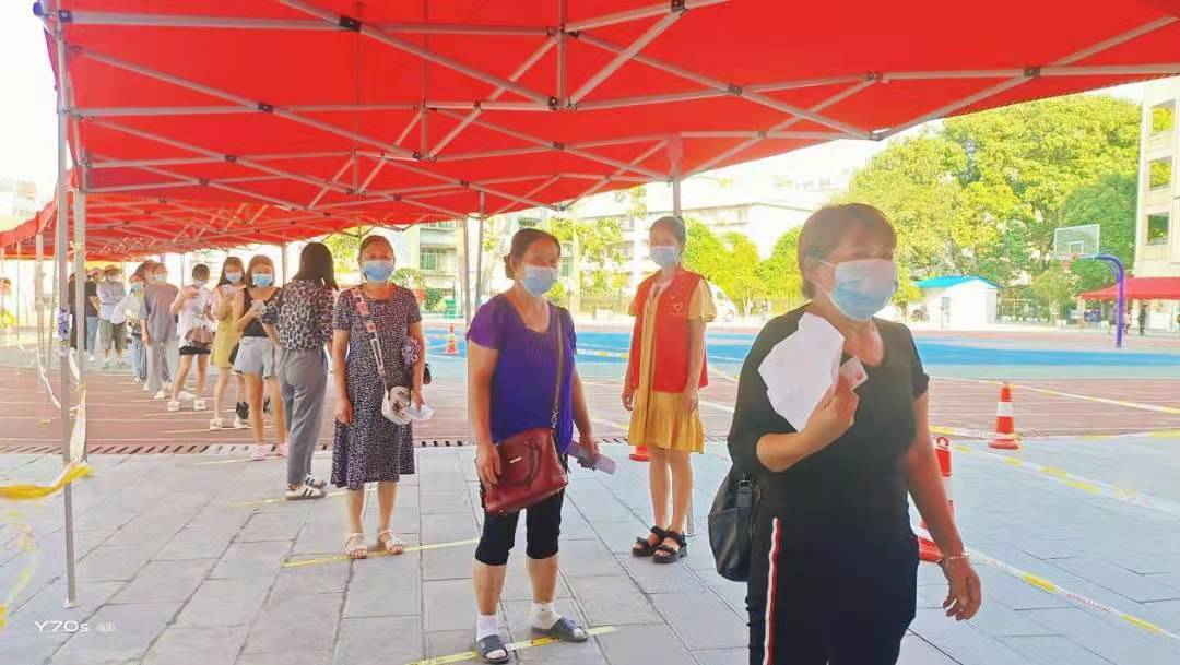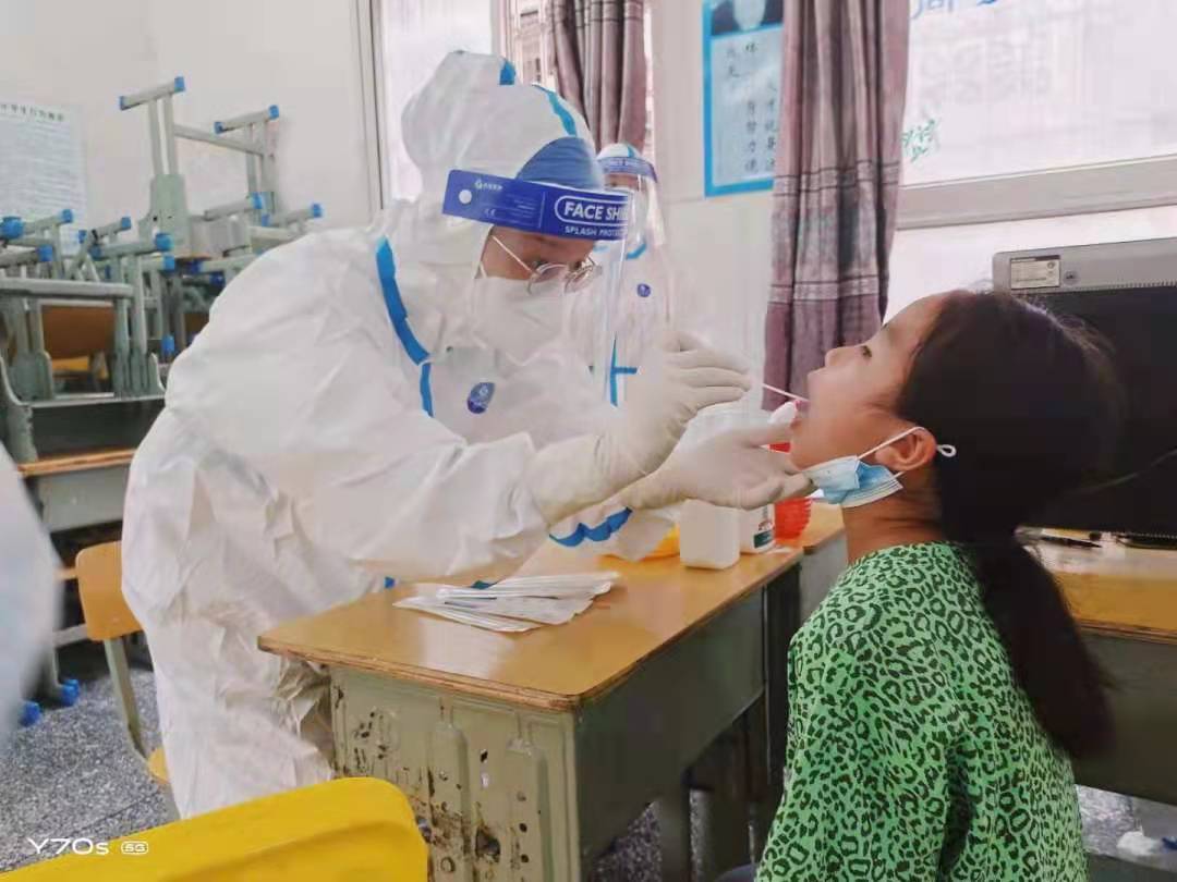 二、坚守阵地,师魂闪耀 “他们走下讲台走上‘疫’线”“他们是接种点最动人的一抹红”。在吉首市所有疫苗接种和核酸检测点,600多名教师志愿者顶着烈日,不辞辛苦,根据接种人群、天气情况,采取“发号叫号”,开辟“绿色通道”,设置“休息等候室”,搭建遮阳蓬等温情服务,工作高效开展。 为助力医务人员做好核酸检测工作,学校20名校医主动请缨,穿上密不透风的防护服,连续3天不下“火线”,服务群众上万人次,成为疫情防控一支中坚力量。 吉首市教体局多方联动,有序推进12至17岁学生疫苗接种工作,做到应接尽接,圆满完成任务。