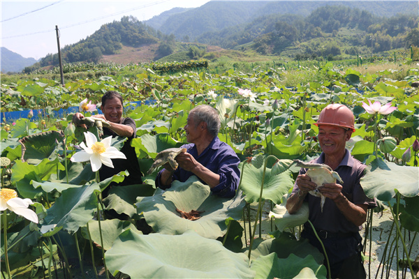 “莲鳖共养”是一个互利共赢的过程,由于是绿色无公害养殖,莲田中捕捉到的甲鱼是“莲鳖”,具有极高的营养价值和药用价值。另一方面,也可以减少对宣莲肥料的用量,提升宣莲品质,进而使得甲鱼和宣莲都能提高经济效益。