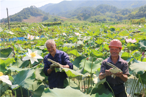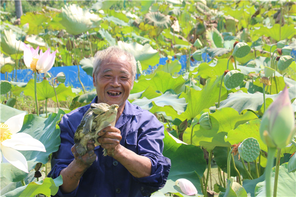 张显友介绍,全塘口村50亩的试验田,首期于五六月份先后投放了7000多只甲鱼苗,水源来自于村里的乌溪源水库,依托附近的好山好水好环境,合理布局“水体—甲鱼—宣莲“的立体空间,形成了一个良性生态循环的无公害立体生产链。到目前,每只甲鱼已基本达到1.2斤,成活率达到97%,预计每亩莲田能增加3000元以上的收入,给莲农们带来可观的效益。现村里已将这一项目按照有机管理操作进入有机转换申报中。(王东方)