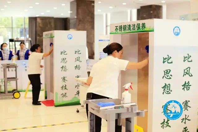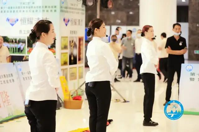 最后,由杨松主席宣布大赛开幕。 本次大赛竞赛工种分为社区保洁员和石材护理师。各参赛单位及参赛选手通过形象展示、不锈钢清洁保养、清洗保洁机械化清扫操作、石材护理四个项目进行比赛。比赛中,各位选手心无旁贷,有条不紊,用他们熟练的专业技术展现出精湛的专业水平,充分展现出清洁人的劳动之美、技能之光。通过选手们熟练的技巧,精湛的工艺,更提升了人们对技能人才、对工匠精神的尊重与崇尚。