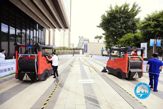 清洗保洁机械化清扫操作 在选手们展现自己能力的同时,裁判们也表现出自己的公正性和专业性。裁判们多角度剖析选手们的操作流程是否规范。