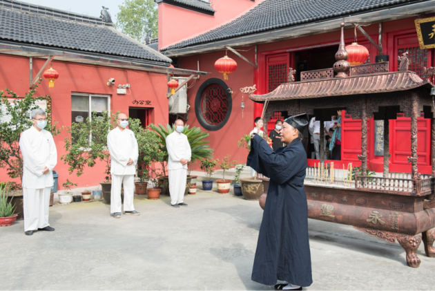 随后举行了金盆洗手,法事礼仪等环节、静芬道长为大家祈福。