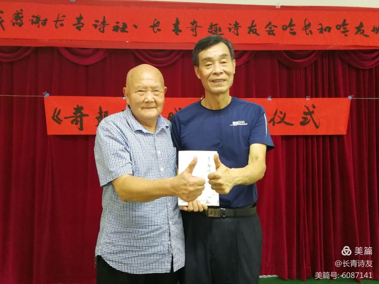 本次活动的另一主题是为奇趣诗名家、指书家、长青诗社奇趣诗名誉会长姜祚正老师接风,87岁的姜老刚从湖北老家返深,精神矍铄,声音洪亮,席间即兴做诗一首: 爱上奇诗兴趣浓, 休说米寿便是翁。 老马识途方为贵, 跟随长青起诗风!