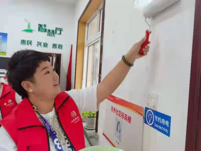 活动中,大家手持工具、分工合作,对天齐社区办公室、楼道等场所进行粉刷,经过大家的共同努力,社区内的面貌焕然一新。同时,向周边居民群众宣传普及文明创城知识,树立文明新理念,人人参与创建,共享文明成果。