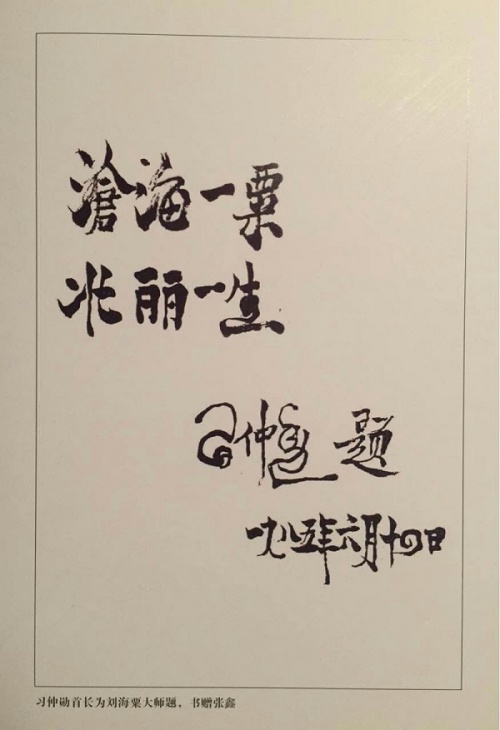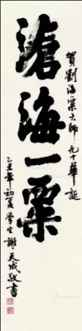 1985年刘海粟90大寿,在深圳,谢天成为恩师写了一幅“沧海一粟”书法作贺。