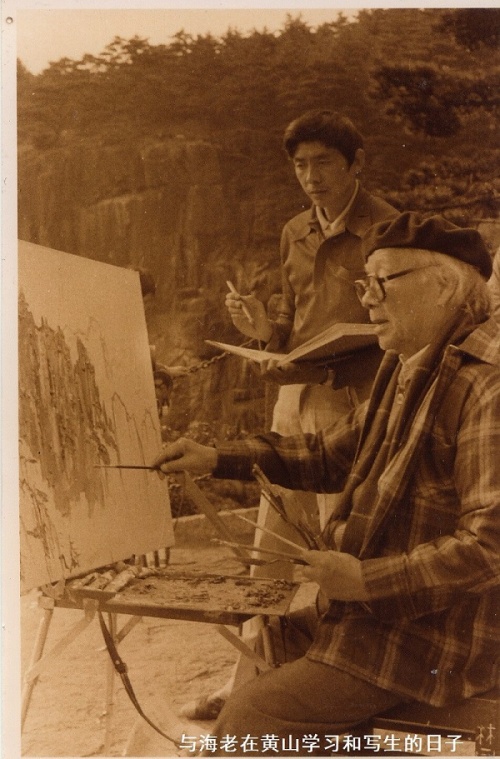 1982年谢天成随刘海粟“九上黄山”写生作画