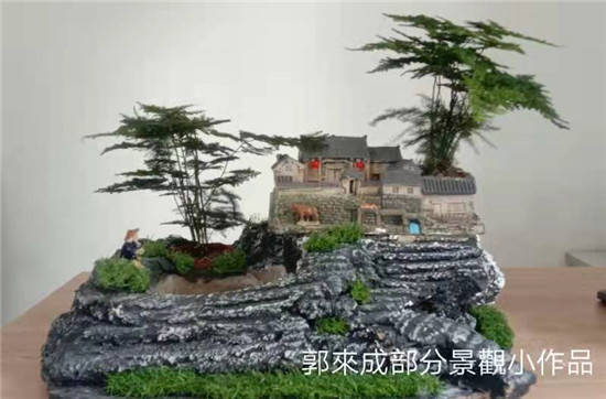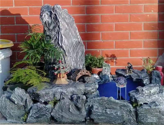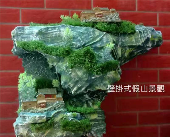 他经过观察发现在庭院一处制作鱼池流水假山越来越受到人们的喜爱,水从山间引入池,潺潺的流水声是那么的景深恰然,静中有动,宛然有趣。 他走进大型商场或者游乐场所,他就想如果在欢庆的节日里,能不能安置那种爬满植物的人造“假山”,在节庆氛围的渲染上起到画龙点睛的作用,令客人纷纷驻足,流连忘返,也能很大程度的聚集人气。或者在炎炎夏日里酒店大厅摆放连绵的“雪山”,令宾客心情爽朗,宾至如归。这一发现让他联想到怎么处理那些白色污染垃圾了,他想利用废旧回收白色垃圾制成各种各样造型的假山,或者皑皑白雪,让艺术赋予了白色垃圾更深的含义。 五:灵心胜造物,妙手夺天工 为了这个梦想,他又开始了他没日没夜的实验和研究 ,终于突破传统工艺,研发出了独有的假山、盆景制作工艺。 传统假山呆板呆滞,缺少大自然的灵性,他希望通过他独有的制作工艺让没有大自然效果的传统假山,赋予它生命的活力。 再看他作品细节,有什么与众不同的创新: 大胆创新,突破传统假山制作工艺,采用水性成膜材料,无机填料没有用的泡沫,废纸张,不用模型自由发挥出来的,假山制作材料里添加了天热石粉,麦饭石粉,以及表面积很大的活性炭等材料合成。 快捷的造型工序,使它能在短时间内塑造出一个个抽象或写实的鲜明形象。 他做成的假山不仅是赏心悦目的艺术品,还可以净化空气,吸收室内有机挥发物,依据用户需求,还可以延伸到光电,声电,超声波,激光等,可以减压人的压力,烦恼,疲劳,特别配有音乐系统的在云雾缭绕,灯光迷幻,播放悠扬脑波音乐,对大脑放松非常有效果,并且有催眠功能。