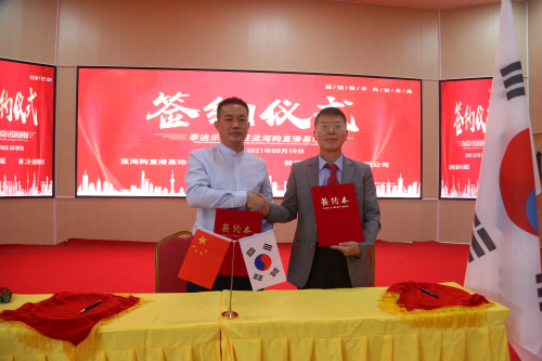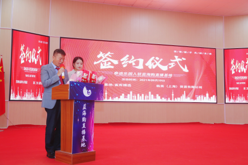 (蓝海购直播基地代表王德旗与韩国泰迪朋友代表申东睦签约成功) 蓝海购上海(直播)基地自2020年9月19日开业以来,在松江区新浜镇政府的大力支持下,仅用了一年的时间就完成了公司制定的目标,今天又将这一全新的购与玩、吃、乐于一体的新体验奉献给广大消费者,引领着全球购物与娱乐完美结合的新时尚,新潮流。 2021年9月19日韩秀(上海)公司将韩国品牌“泰迪和8朋友”儿童乐园正式入住蓝海购上海直播基地,这不仅在合作项目上有童具、童装,成人服装,情侣装等服装服饰等产品开发,同时还向全国推广这一全新市场销售模式和构建新时尚的购物环境。