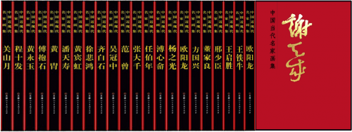 前言: 为肯定国家一级美术师、中国美术家协会会员、刘海粟艺术研究院院长、刘海粟弟子谢天成为中国美术界做出的突出贡献,2012年,由人民美术出版社出版,收录谢天成作品的《中国当代名家画集·谢天成》(俗称“大红袍”)在北京出版发行,此举将他的艺术成就推向顶峰。 登“红”造极!谢天成入选大红袍 与齐白石、张大千等名家共享至高荣誉 “大红袍”系人民美术出版社出版的《中国近现代名家画集》《中国当代名家画集》两套大型系列画集,是人民美术出版社出版的绘画名家专集。“大红袍”自1992年开始编辑出版,被誉为美术出版物的顶级产品,是介绍中国近现代著名画家著录的权威画集,是我国艺术界一个神圣的存在,是中国最具影响力的权威学术刊物!只有中国美术史奠基者、画坛先驱、美协主席等各类画派创始人才有资格荣登这本画坛史册。 入选“大红袍”难度极大,标准苛刻。现仅已出版钱松碞、刘海粟、关山月、程十发、张大千、齐白石、黄永玉、范曾、吴冠中、黄胄、潘天寿、黄宾虹、刘大为等200多名著名画家的专集,可谓凤毛麟角。 而2012年,谢天成作为泼墨画家的顶级代表入选了“大红袍”,与近现代画坛一众泰山北斗并列其中,既代表着画坛至高荣誉,更是对谢天成在中国美术界做出突出贡献的最高肯定!