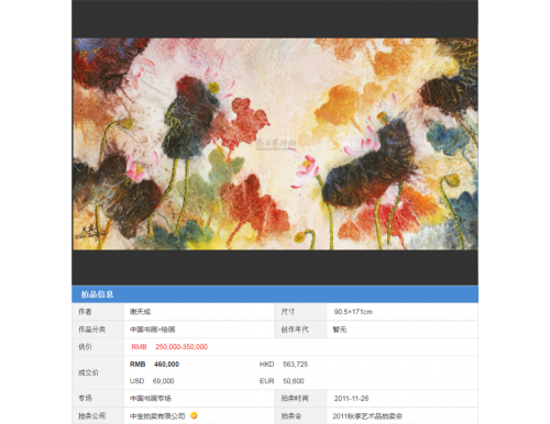 《荷花》—拍卖价46万!2011年北京中宝春季艺术品拍卖会