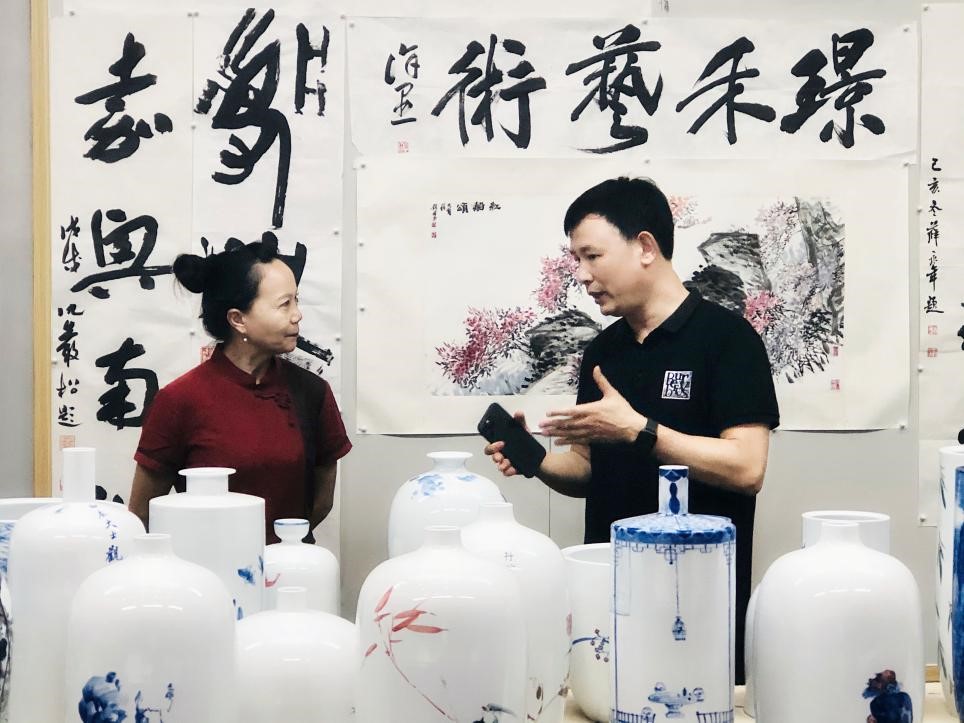 2021世界互联网大会期间,中国资深媒体人陈凤玲在浙江走访多家企业,了解各行业发展现状,其中在她一直关心的文化艺术行业她饶有兴趣的走访了浙江璟禾文化艺术发展有限公司,对于该公司“把艺术带回家,让艺术生活化”的历年颇具认同,董事长俞大有全程陪同了参观。