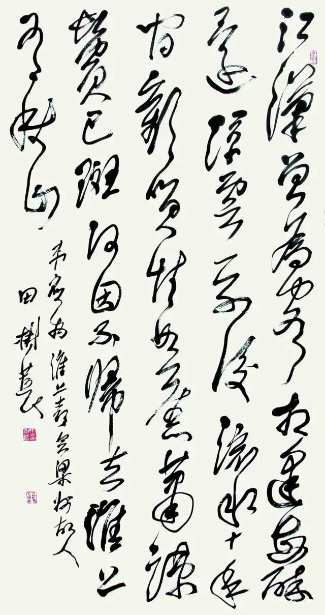 一种风格的建立,非一朝一夕之事。田老在书法大道上的追索,三言两语是说不清的,孜孜矻矻也好,池水尽墨也罢,综述田老在当代书法艺术上的成功秘绝,是他超乎常人的精力、智慧、胆识以及敏锐的洞察和思维能力!准确把控着传统与当代的大文化脉搏!