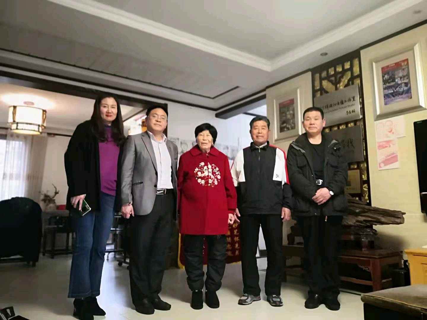 百岁老人赵宗荣(左一)向赵长法动情地讲述赵宗颜的革命事迹