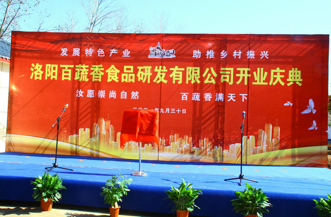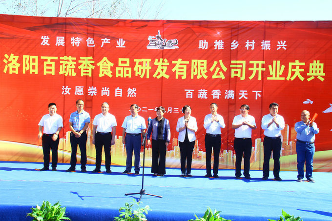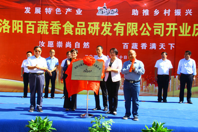 开业揭牌现场 “百蔬香”万里 红薯助振兴”。 9月30日上午,晴空万里,春华秋实,硕果飘香。洛阳百蔬香食品研发有限公司开业揭牌仪式,在河南汝阳县柏树乡红薯产业园隆重举行。 “柏树乡红薯产业园”是在汝阳县委、县政府大力支持下创建的易地扶贫搬迁后续扶持项目。园区占地27亩,投资595万元,是集研发、生产、物流、销售等为一体的综合性农产品园区,该项目对提升当地拳头产品红薯的产业优势、带动全县产业链发展具有重要意义。